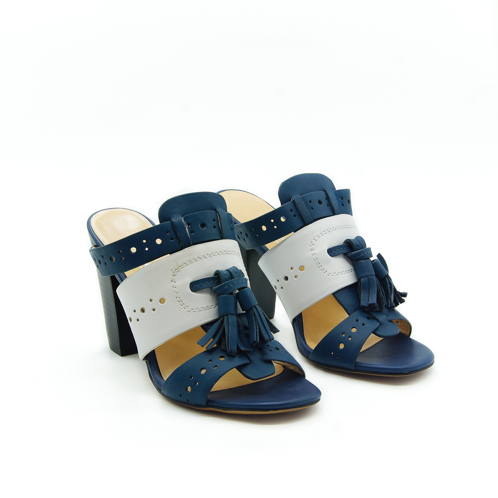 удобные мюли на высоком, устойчивом каблуке. украшены кисточками.